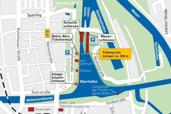 | Wichtige Informationen | Start/Ziel: Anleger Schachtschleuse / Minden (Sympherstraße) Ticket einlösen: Bitte tauschen Sie am Tag der Fahrt dieses Online-Ticket in unserem Büro an der Schachtschleuse (Sympherstraße 16) gegen tagesaktuelle Fahrkarten ein! |